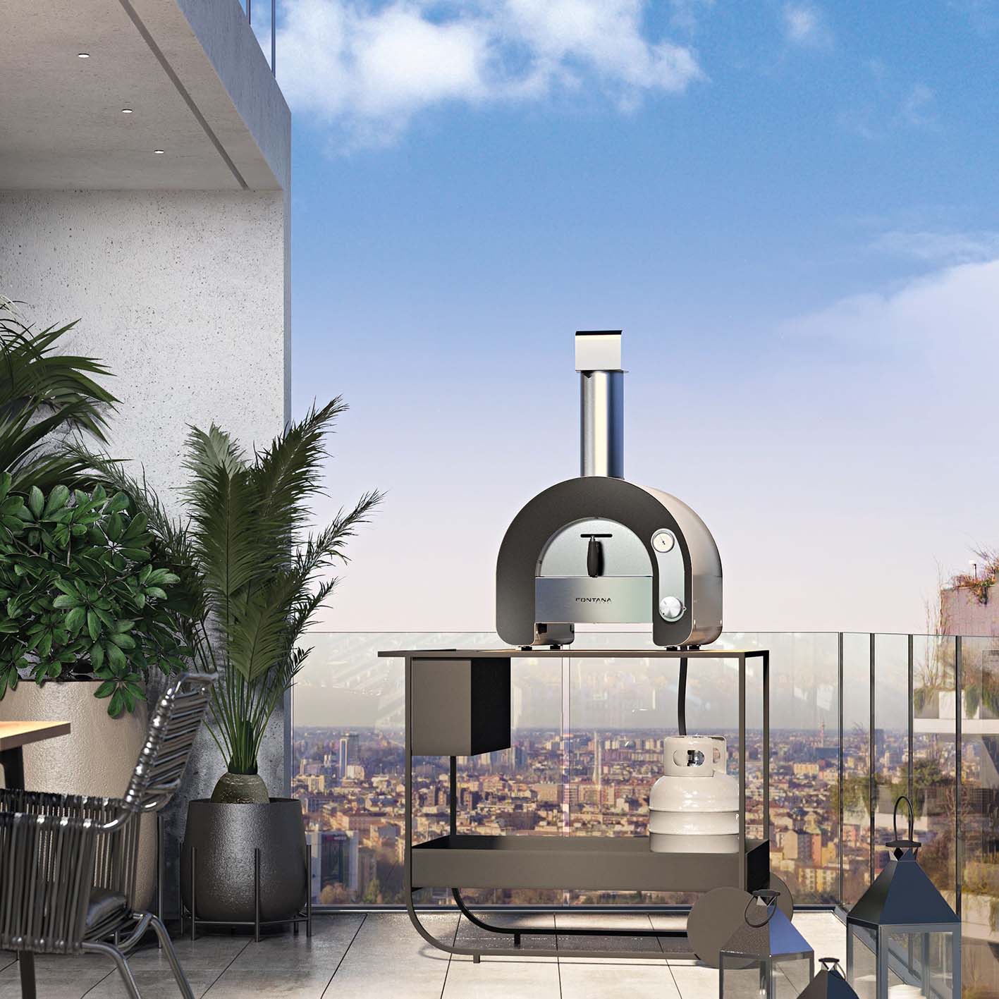 The smallest of the family, but with the largest cooking area on the market in its category: 40×40 cm. Made of painted steel and stainless steel, equipped with flue and rainproof chimney, steel door with no- hot handle and analogic thermometer. Inside, a very thick steel flame hitter improves heat distribution and protects the steel vault from any heat stress. The high performance of Maestro 40 is also guaranteed by the thick insulating material that insulates the vault. Thus, allowing you to reach high temperatures in less time with less fuel consumption.